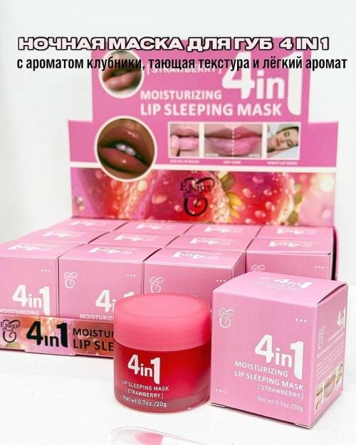 НОЧНАЯ МАСКА ДЛЯ ГУБ 4N1 с ароматом клубники, тающая текстура и лёгкий аромат